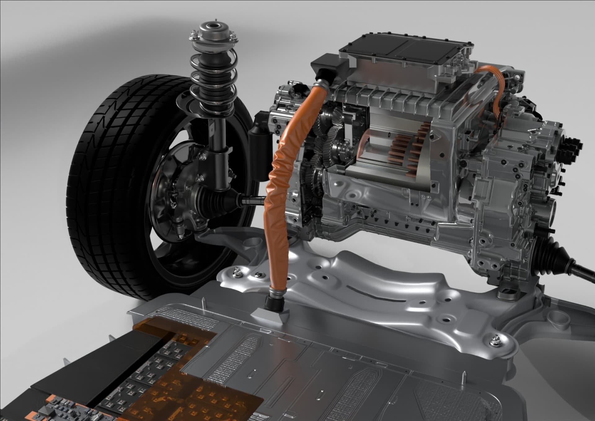 Damit wir den Einsatz der Fuchs-Produkte zeigen konnten, mussten wir tief ins Innenleben eines Fahrzeugs bzw. der Antriebe und Motoren eindringen. Dazu wurden sämtliche Fahrzeugkomponenten dreidimensional illustriert und fotorealistisch gerendert. Ganz nebenbei haben wir dafür auch ein völlig neues Auto entworfen.